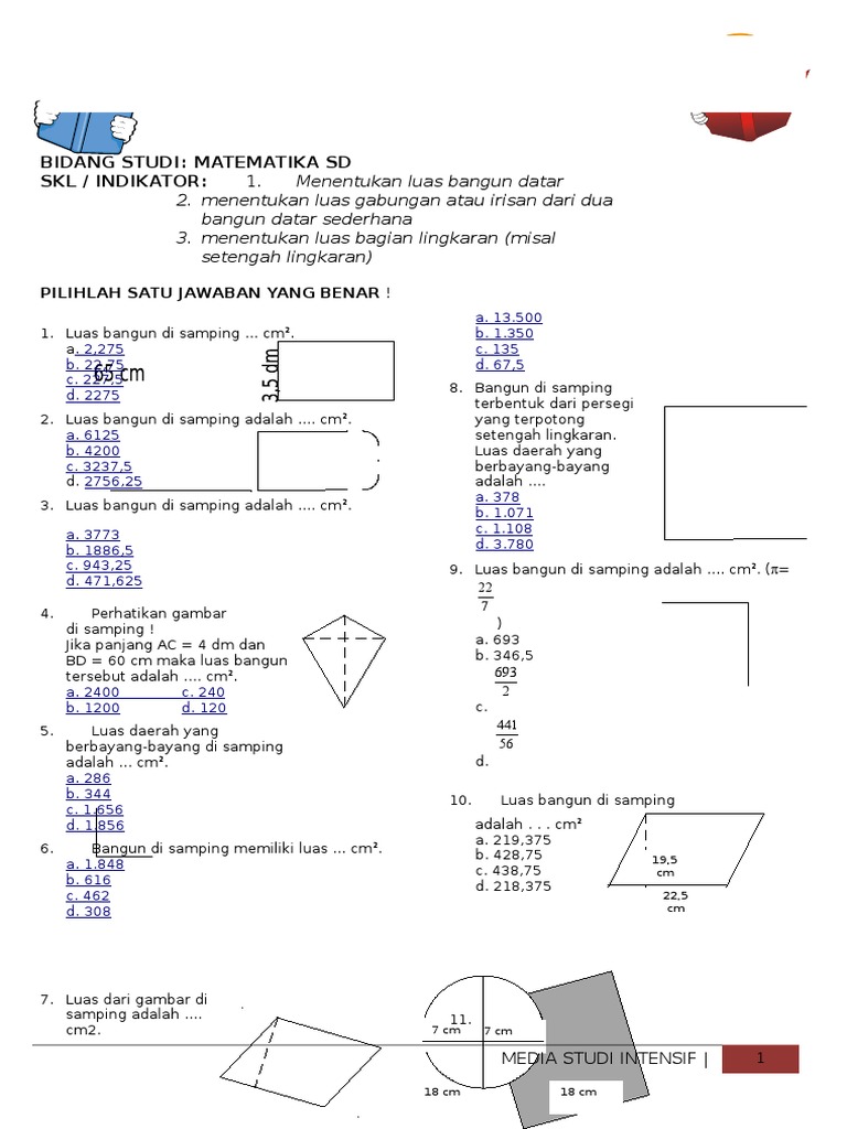 Contoh soal bangun datar gabungan kelas 6 sd.